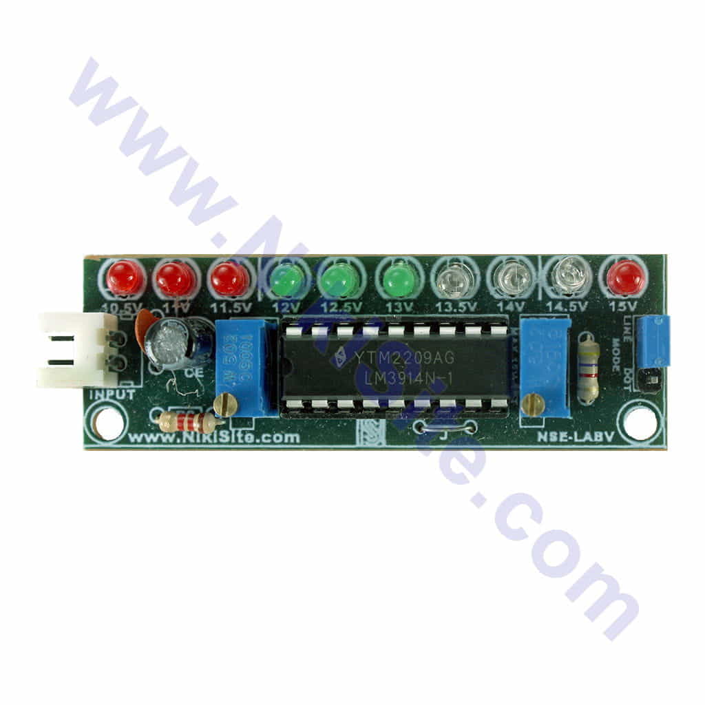 🔹 نمایش 10 سطحی ولتاژ باتری با LED های رنگی