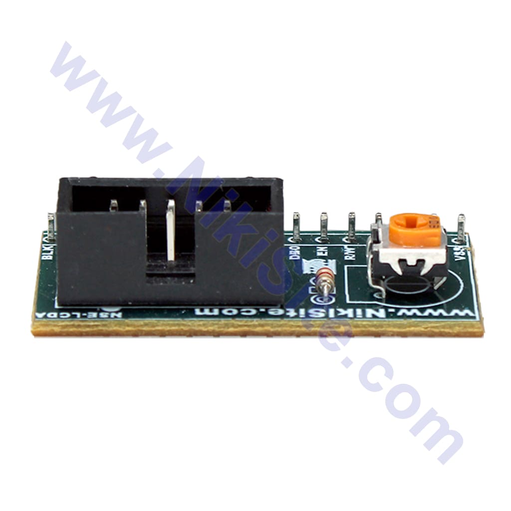 پایه شماره 3 [VE] : این پایه مربوط به تنظیم کنتراست نمایشگر می باشد. نحوه تنظیم کنتراست به این صورت می باشد که هرچقدر ولتاژ اعمالی به این پایه به مثبت 5 ولت نزدیک باشد متن ها بر روی نمایشگر به صورت کم رنگ تر نمایش داده می شوند و بلعکس هر گاه ولتاژ اعمالی به این پایه به صفر ولت یا همان GND نزدیکتر باشد متن ها به صورت پر رنگ تر نمایش داده می شوند. در پروژه ها و مدارات برای تنظیم ولتاژ اعمالی بر روی این پایه از LCD در بازه 0 الی 5 ولت معمولا از یک پتانسیومتر یا یک مولتی ترن 10 کیلو اهمی استفاده می شود.