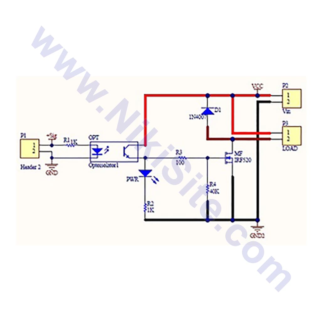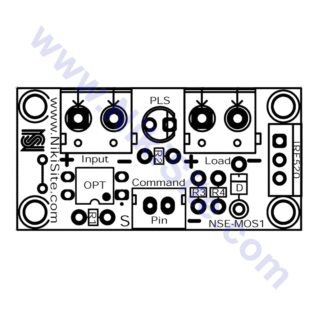 این ماژول برپایه ترانزیستور IRF520 است. این ماژول برای جابجایی بار های الکتریکی DC زیاد از یک پایه دیجیتالی میکروکنترلر طراحی شده است. هدف اصلی تهیه راهی کم هزینه برای هدایت موتور DC برای کاربرد های رباتیکی است. اما میتوان از این ماژول برای کنترل بیشتر بار های DC با جریان زیاد استفاده کرد. دو ترمینال برای برقراری ارتباط با بار و تغذیه تعبیه شده است. همچنین یک LED برای نمایش زمان سوئیچ بار قرار داده شده است.