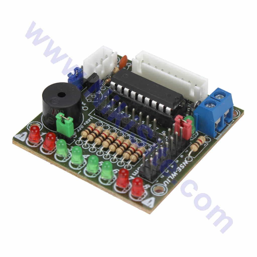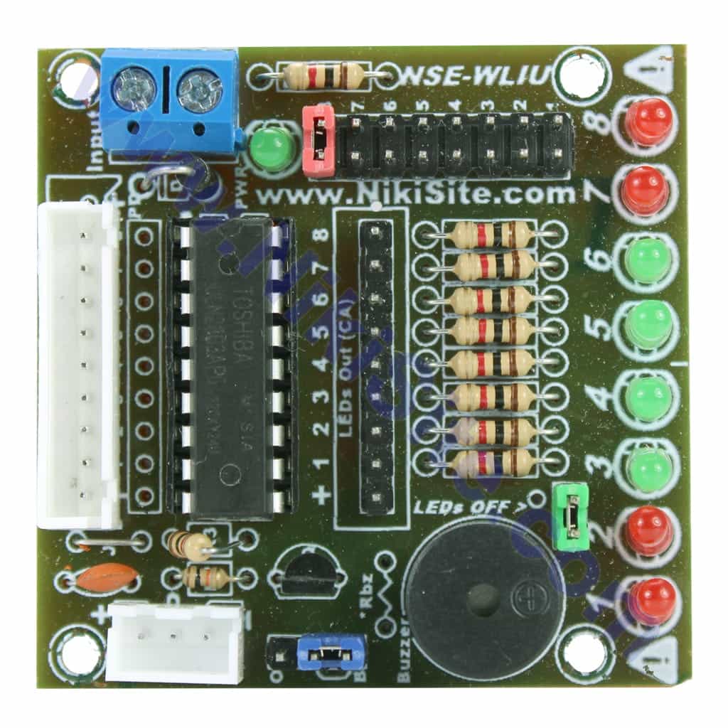 خروجی های این آیسی کلکتور باز هستند و با فعال شدن ورودی هر کانال، خروجی کانال وصل شده و جریان از آن عبور می کند بنابراین در مدار، LED متصل شده به کانال روشن خواهد شد.(شکل زیر)