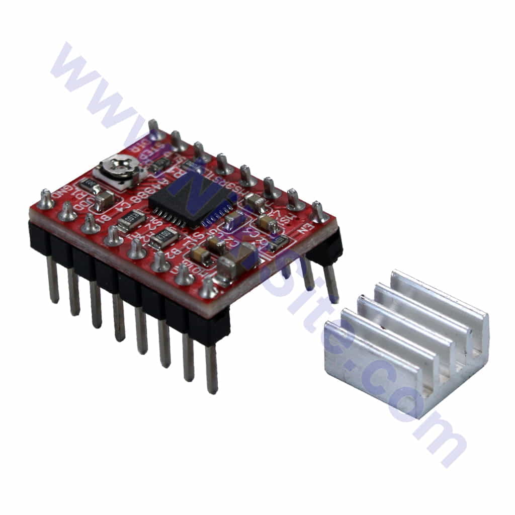 بله، یک هیتسینک آلومینیومی مرغوب برای نصب روی تراشه A4988 در بستهبندی موجود است. برای جریانهای بالا یا کار مداوم، نصب آن ضروری است.