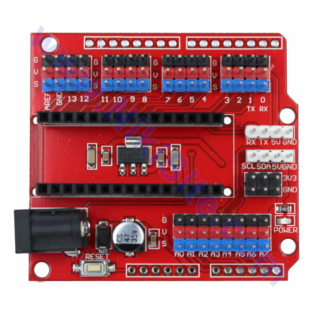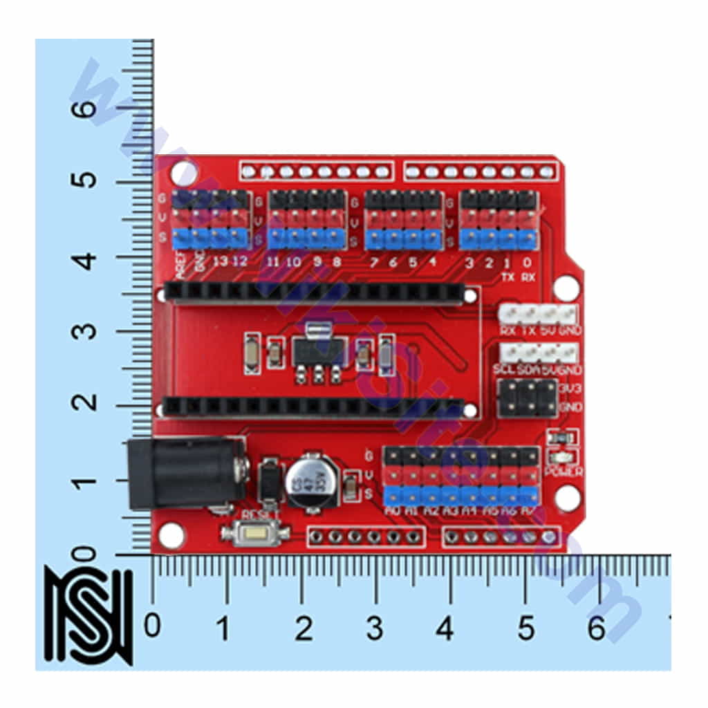 شیلد توسعه ورودی/خروجی آردوینو نانو یک برد افزونهی هوشمند است که با سازماندهی، گسترش و حفاظت از پینهای آردوینو نانو، امکان اتصال راحتتر، مطمئنتر و منظمتر دهها قطعه الکترونیکی را فراهم میکند.